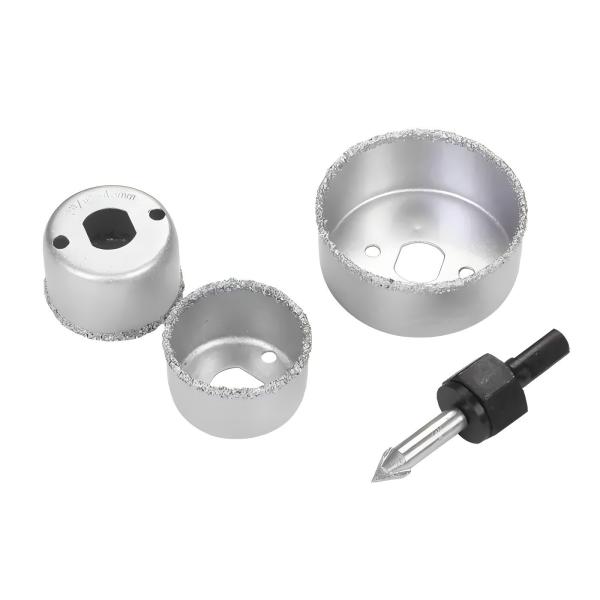 The Tungsten Carbide Stretching Hole Saw comes with 1/4" and 3/8" triangle shank accessories for cutting holes ranging from 19mm to 83mm. The cutting depth of this carbide gritted core bit is 25mm, making it ideal for creating holes of a variety of depths. The tooth material of this product is tungsten carbide, which is known for its durability and resistance to wear and tear. This makes the Tungsten Carbide Stretching Hole Saw a reliable and long-lasting tool.